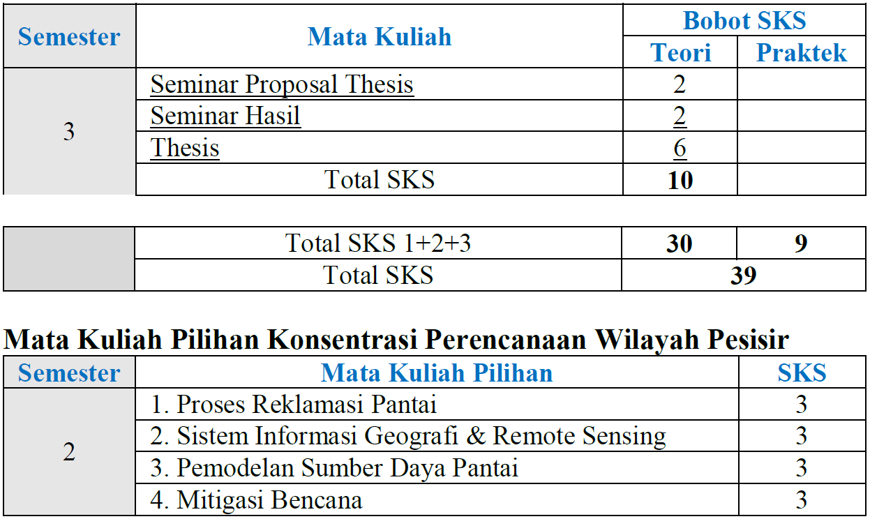 Keterangan: Total SKS MK Wajib 17 SKS Total SKS MK Pilihan 12 SKS Total SKS Seminar Judul Thesis + Seminar Hasil Thesis + Ujian Thesis 10 SKS