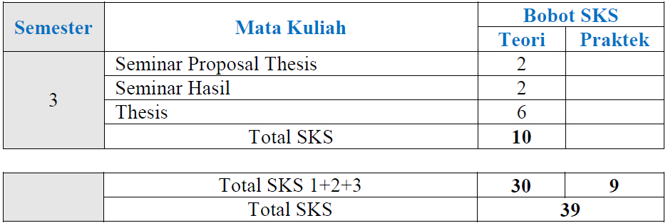 • Total SKS Seminar Judul Thesis + Seminar Hasil Thesis + Ujian